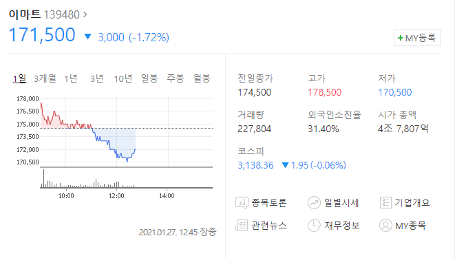 어제 SK와이번스 인수 뉴스가 나자마자 주가가 조금씩 내리더니