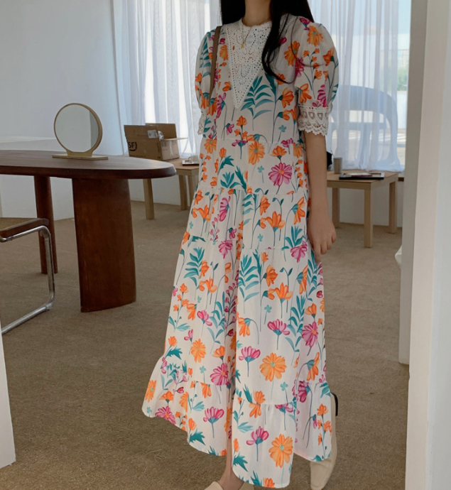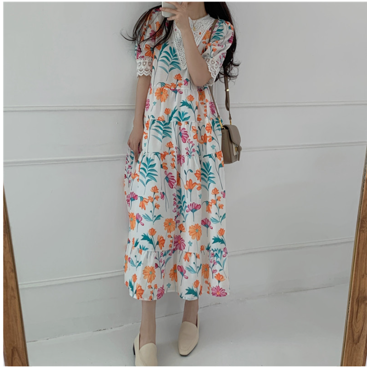 롱원피스 플라워 드레스 반팔 오버사이즈여름코디