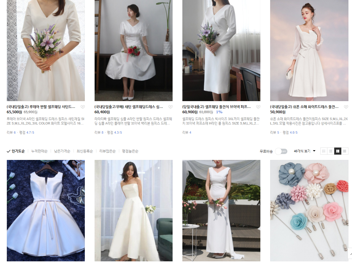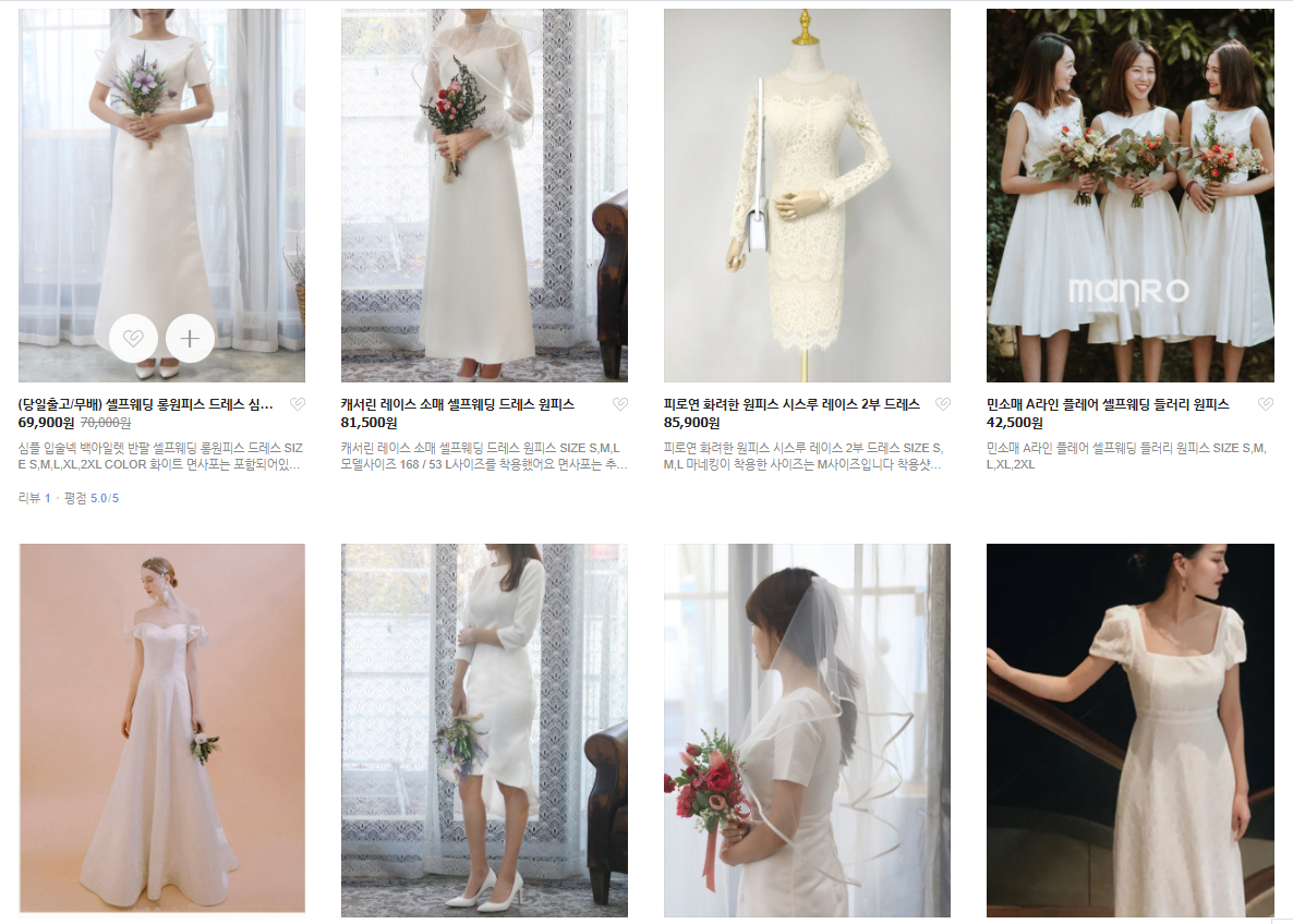 기성 셀프웨딩드레스들은 사이즈가