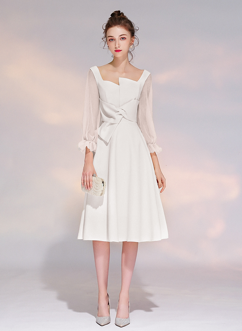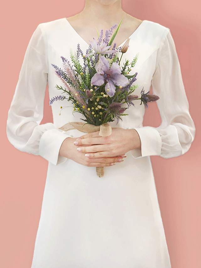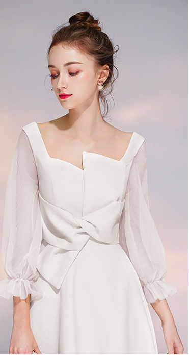 긴팔 셀프웨딩 쉬폰 소매 드레스입니다