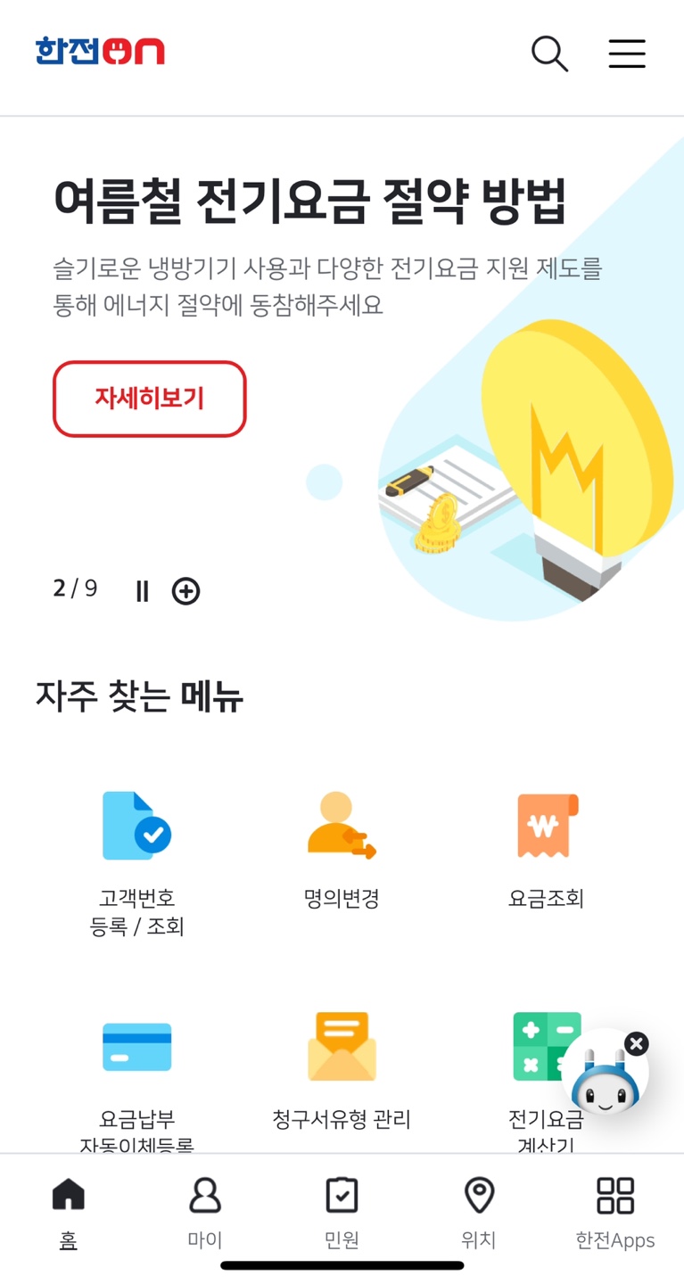 한전ON이라는 어플을 깐 후에