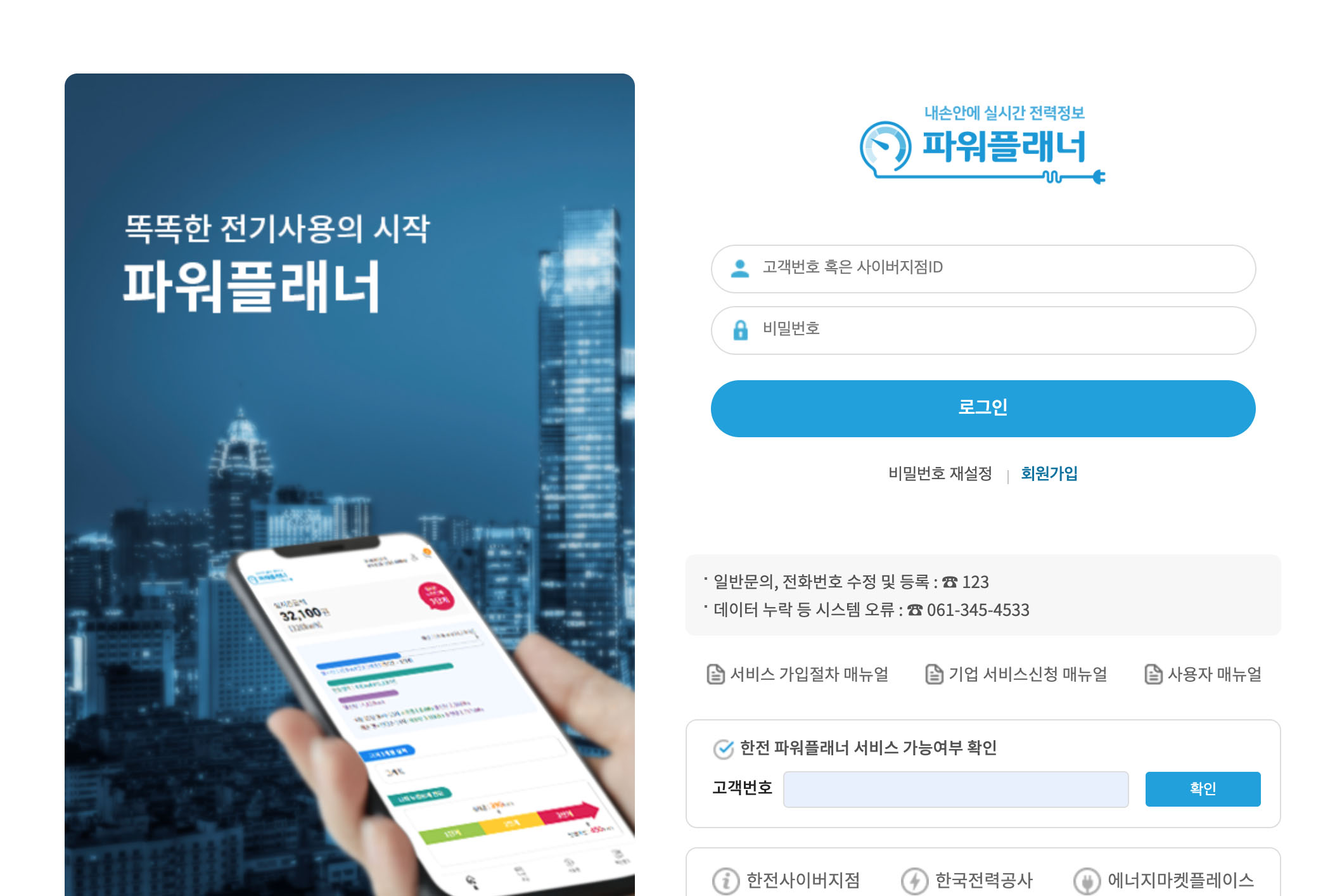 이 고객번호를 가지고 파워플래너 사이트에서