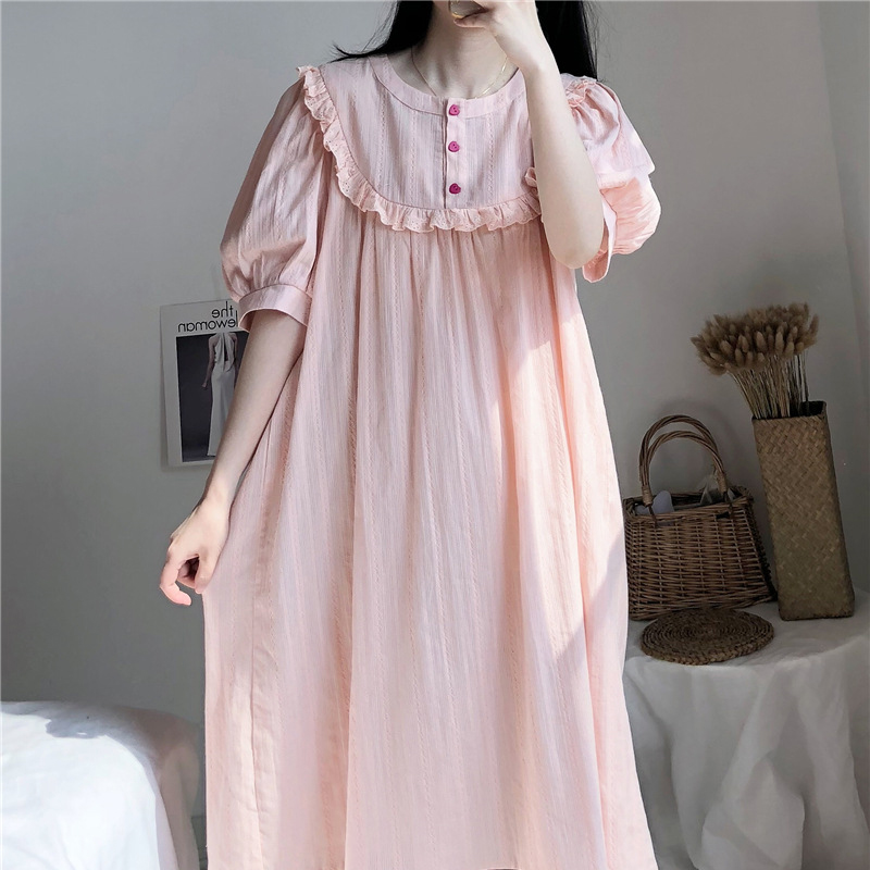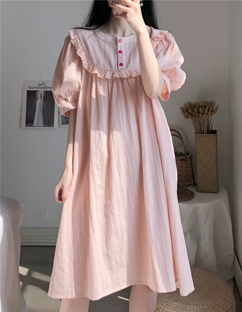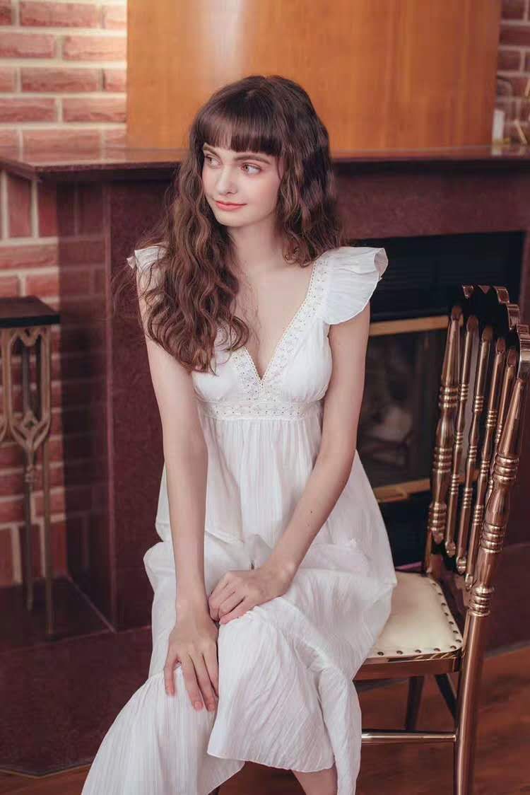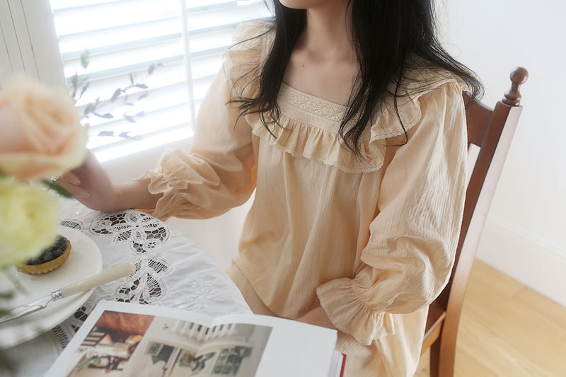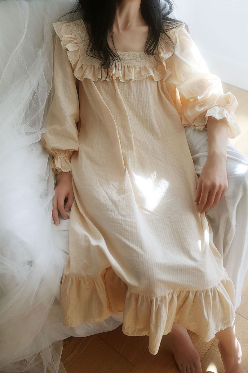 고급스러운 프릴 순면 프릴 홈웨어 공주풍 복고 잠옷 원피스형 수면 : 라라리빠