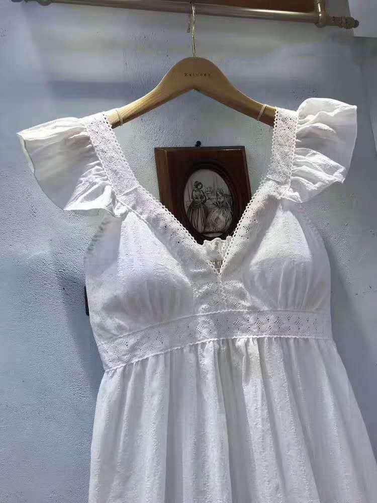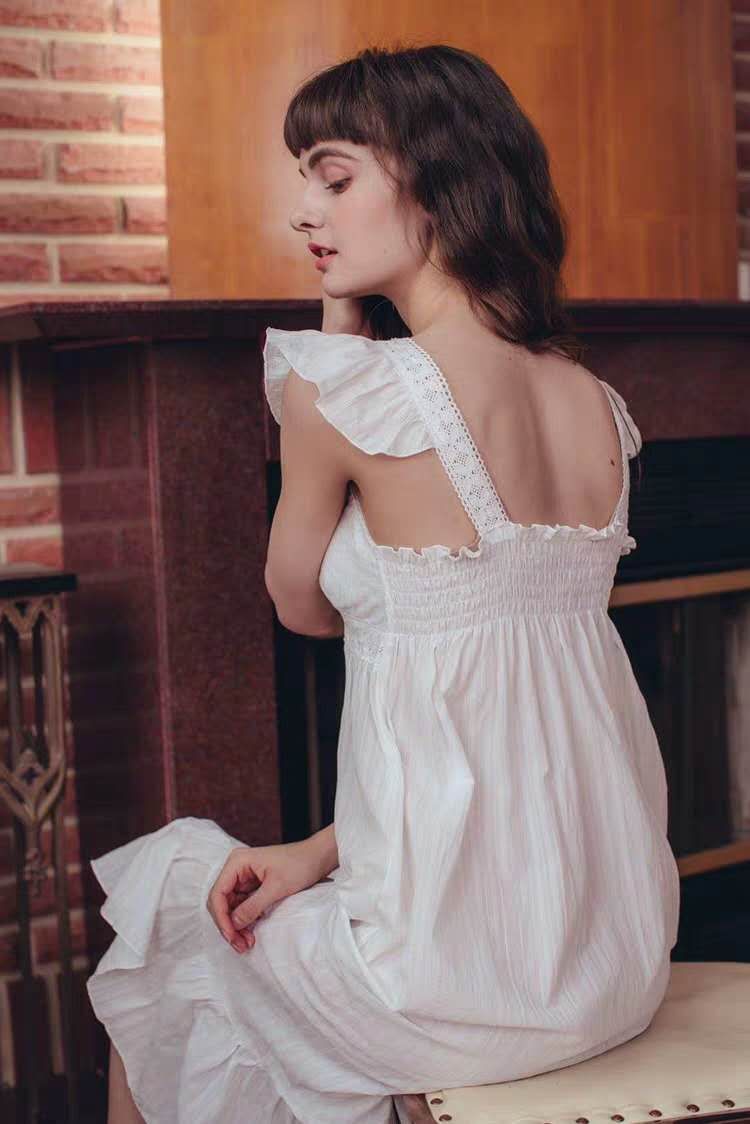 날개형 나시 민소매 고급스러운 프릴 순면 프릴 홈웨어 레이스 잠옷 : 라라리빠