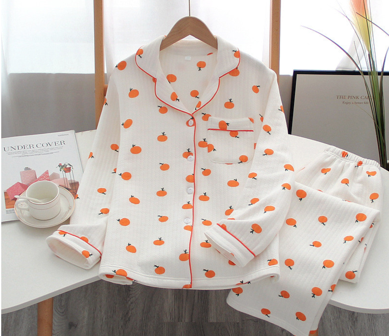 단감 누빔 잠옷 긴팔 여자 세트 누빔 파자마 도톰한 홈웨어 핑크 살구 아이보리 : 라라리빠