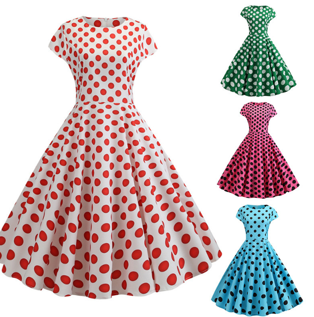 땡땡이 햅번 복고 레드 블랙 미니 도트 귀여운 깜찍한 클래식 원피스 60 70년대 졸업사진 컨셉 사
