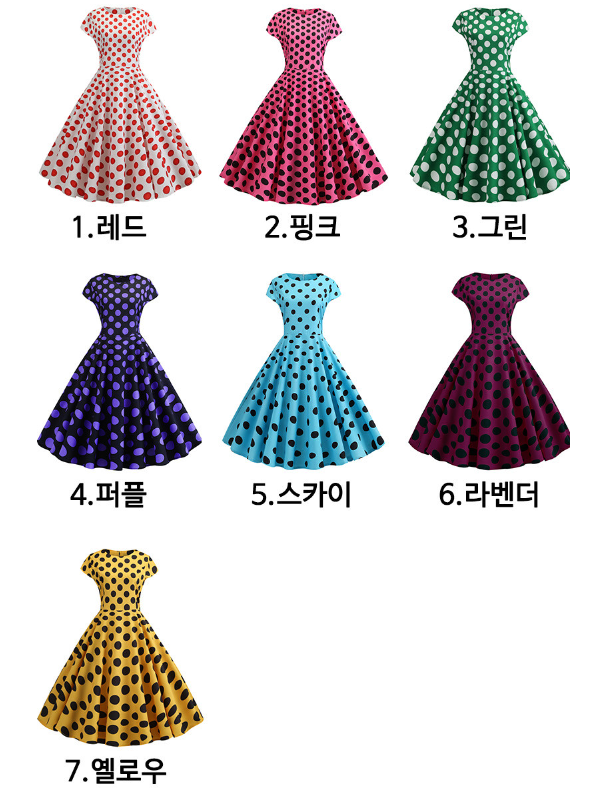 이 의상은 컬러도 여러가지에 도트무늬로 되어있어서
