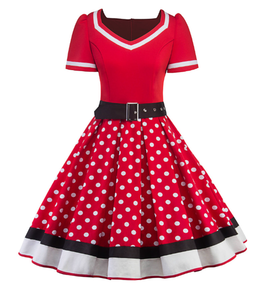 벨트까지 함께 배송되는 공연원피스 무대의상 공연의상 연극의상 라라리빠 도트복고원피스는