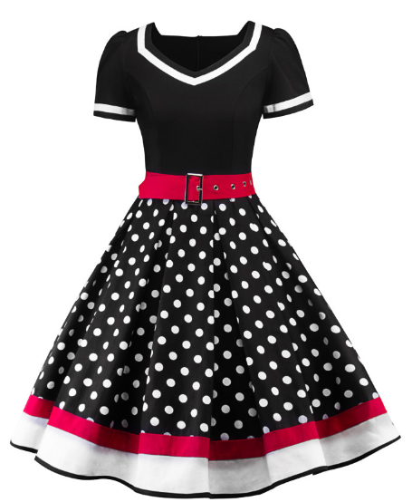 벨트까지 함께 배송되는 공연원피스 무대의상 공연의상 연극의상 라라리빠 도트복고원피스는