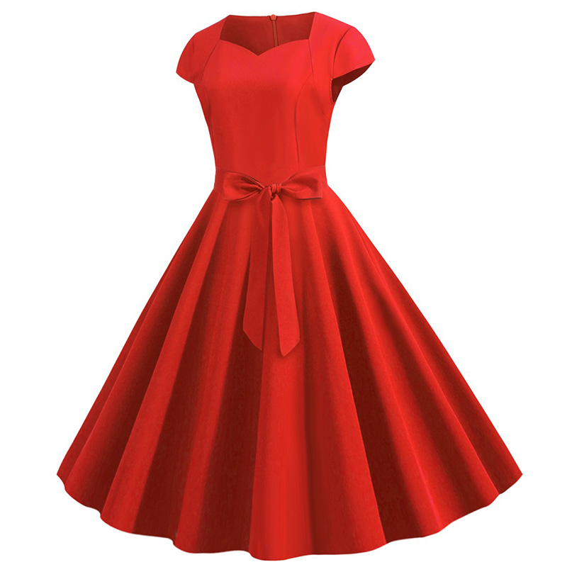 <일부사이즈 국내당일출고> 캡소매 단색 플레어 리본 햅번 스타일 복고풍 원피스 <6color> : 라라리