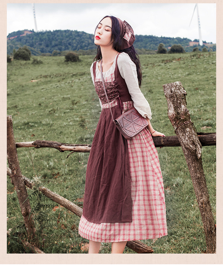 유럽풍 복고풍 레트로 빈티지 체크 꽃무늬 원피스 : 라라리빠