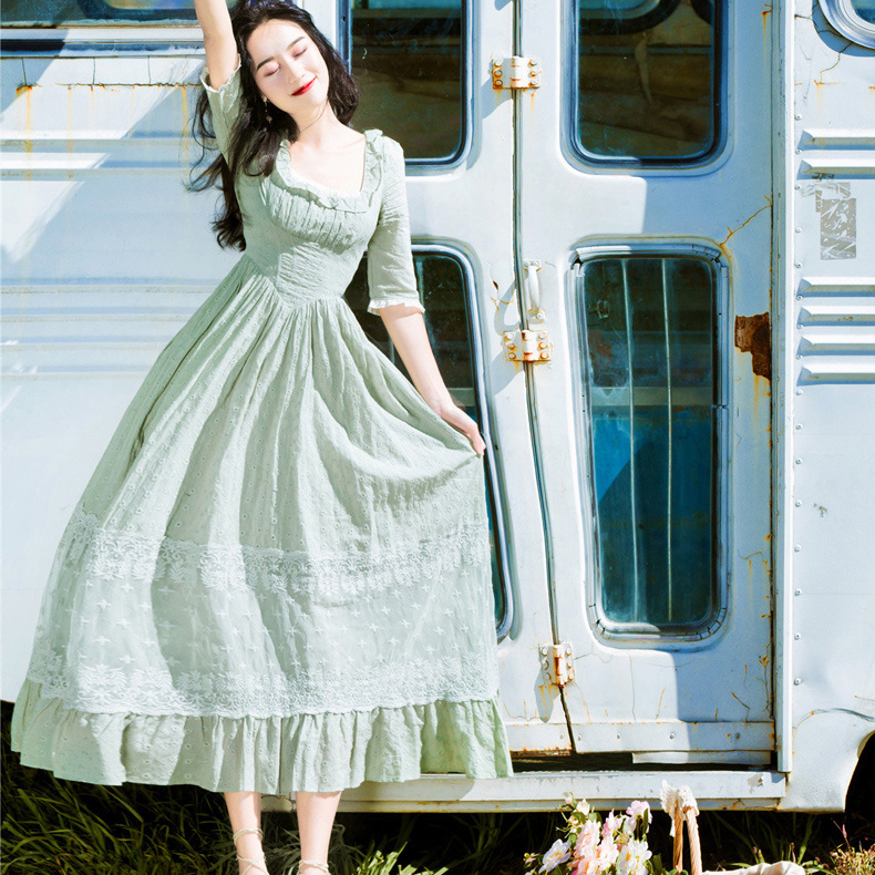 중세시대 느낌의 화사한 그린 여름원피스랍니다