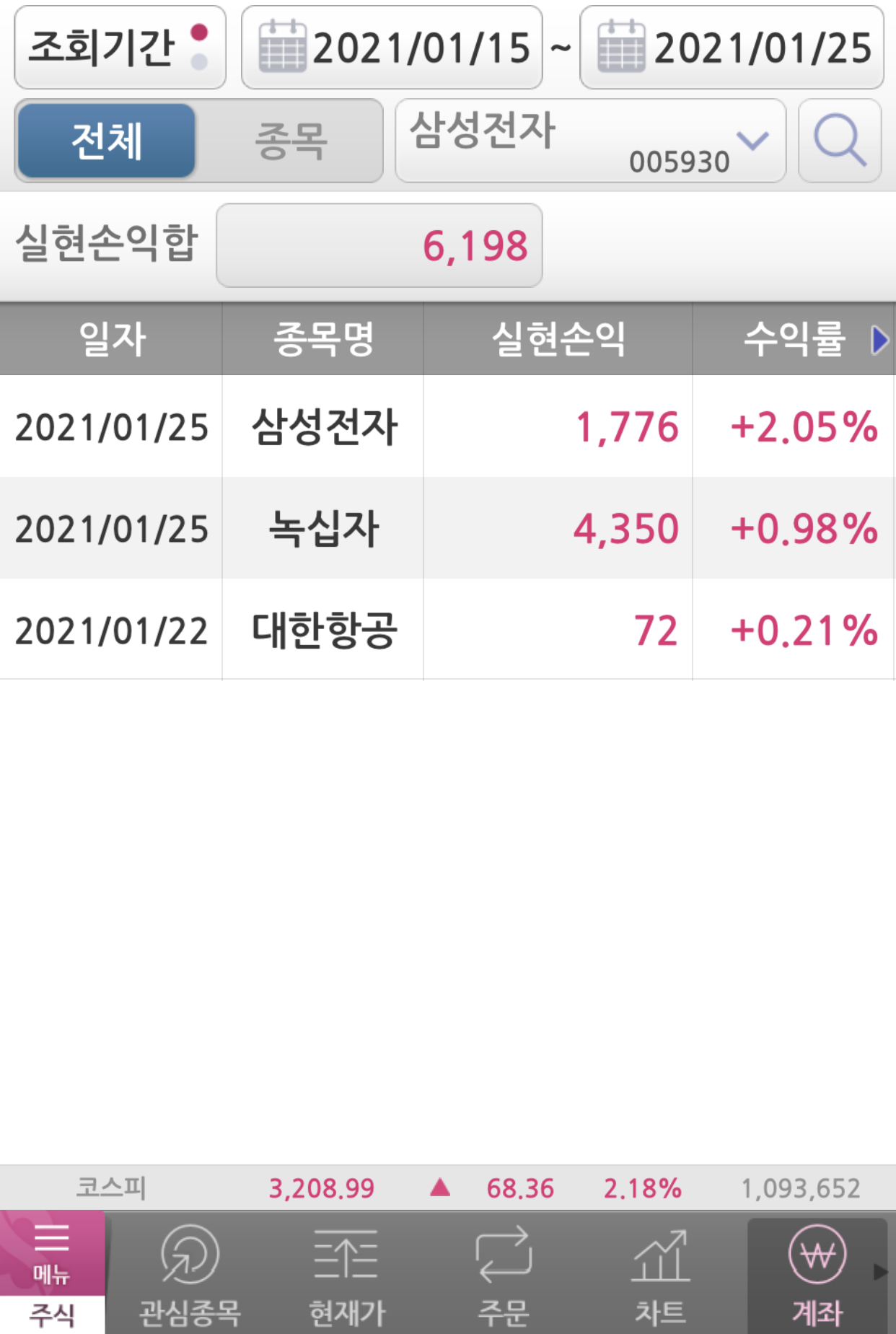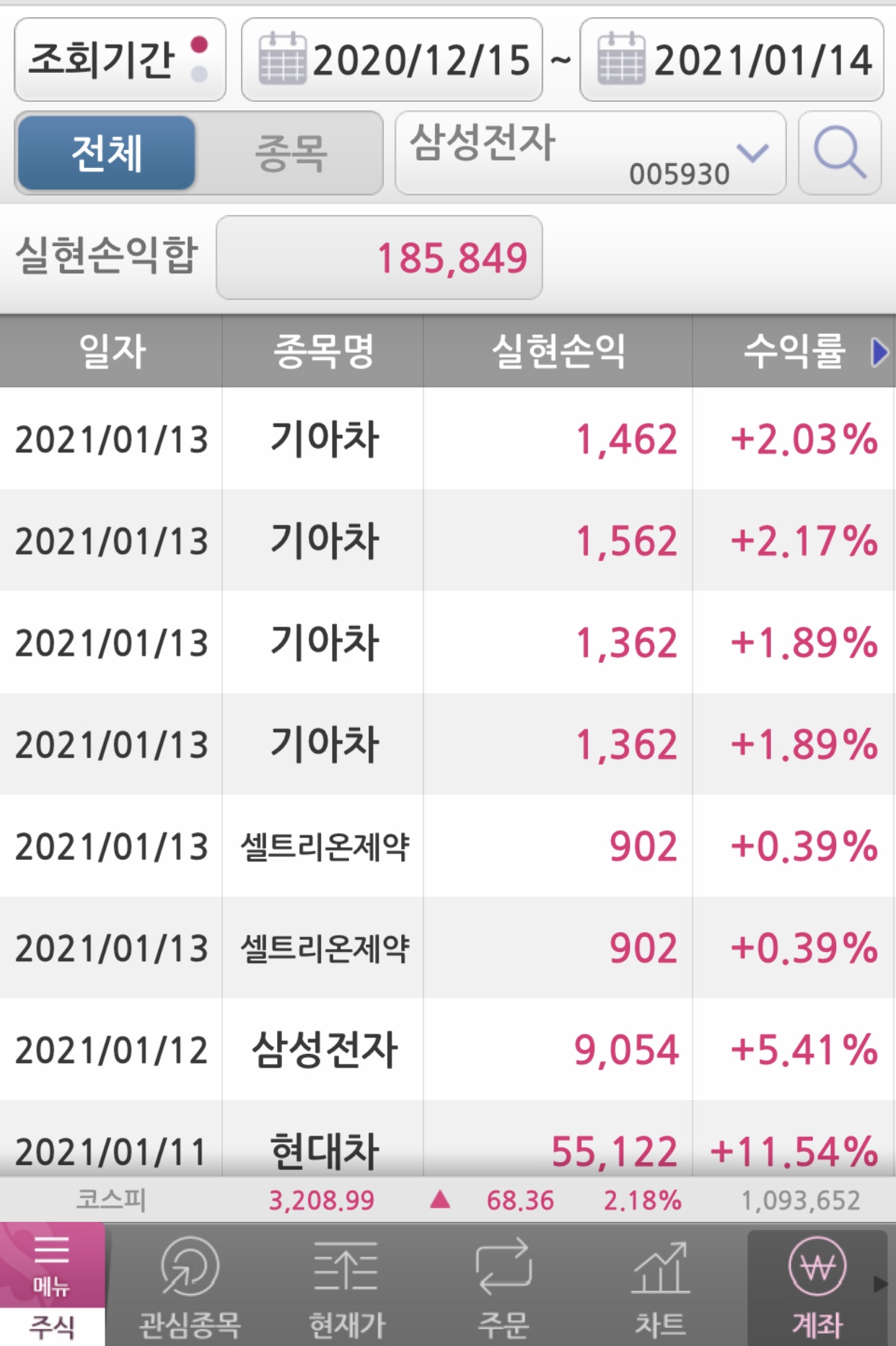 어플은 1개월밖에 조회가 안되는지라 나눠서 캡쳐를 해보았다.
