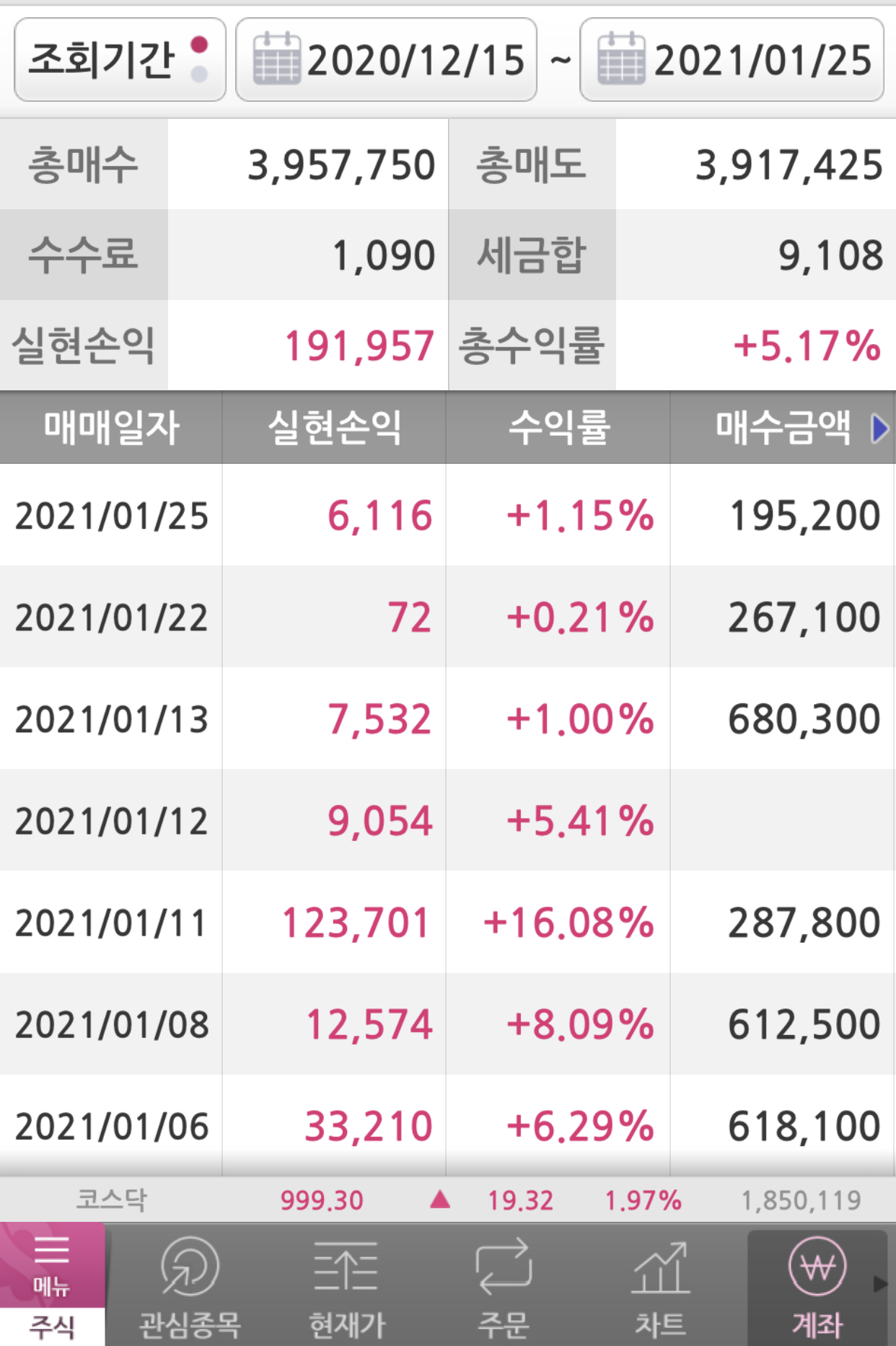 계산해보니 지금까지 총 수익은 192,047원이다.