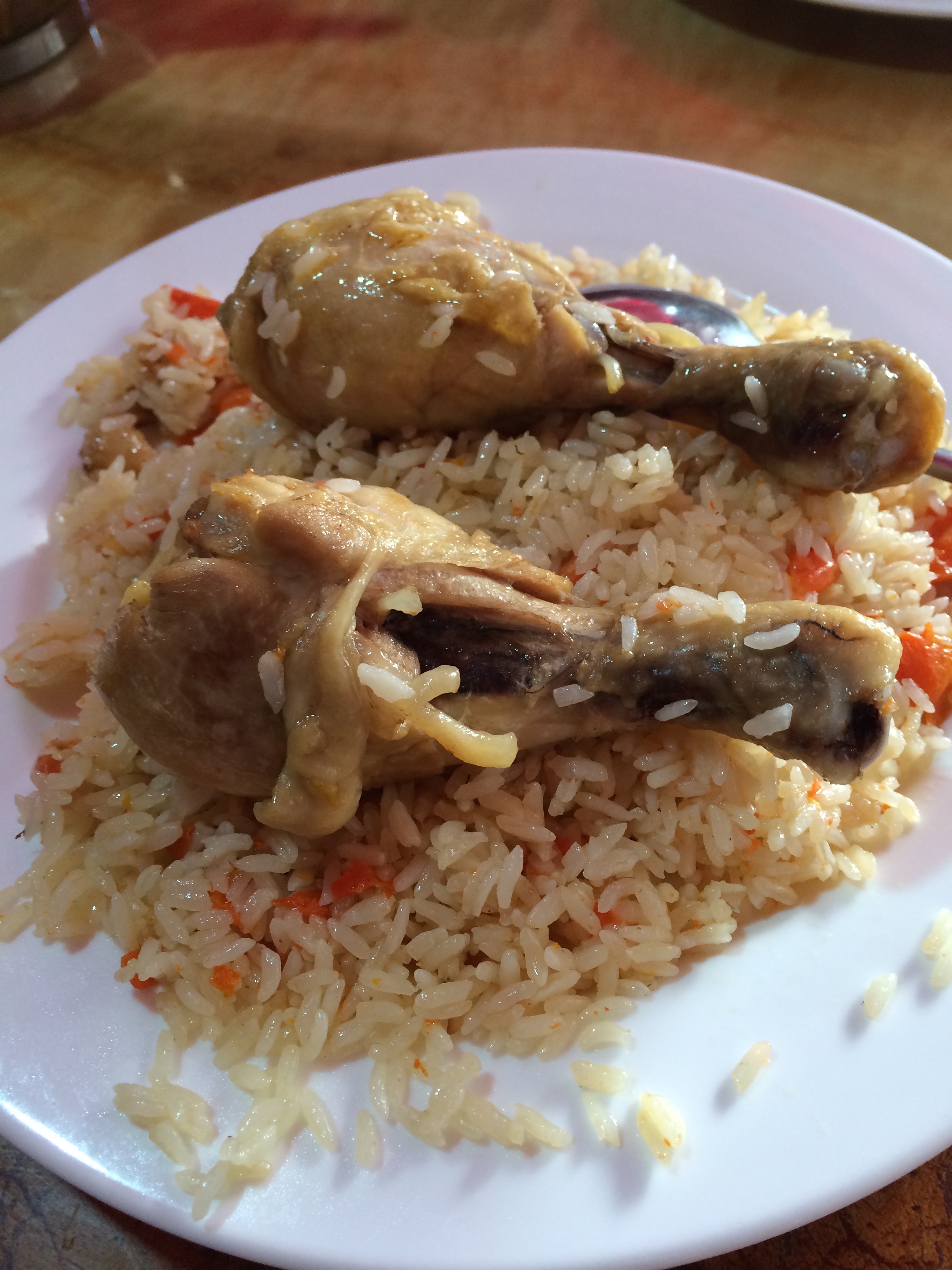 볶음밥 위에 닭다리 올라가있음