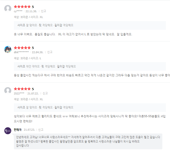 칭찬 일색의 후기를 한번 살펴봐주세요