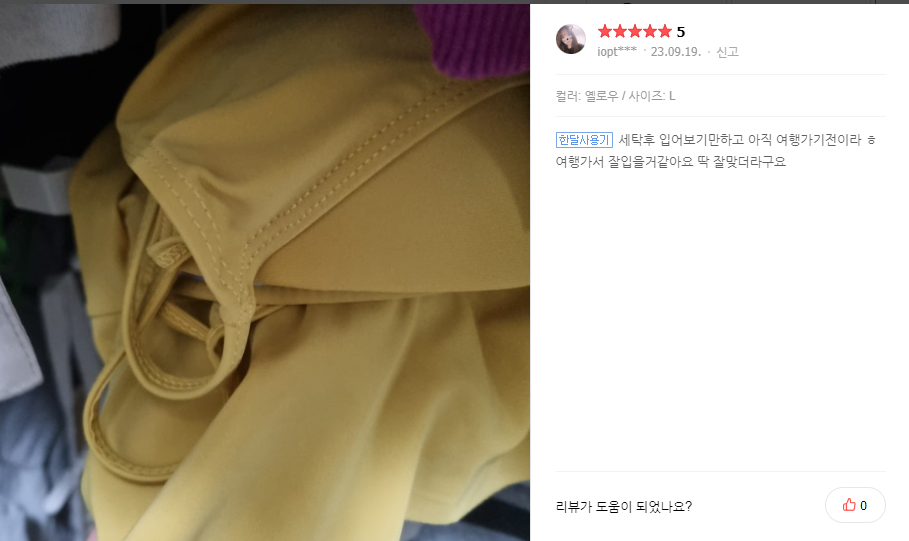 제품으로 움직임에 제한없이 편하게 맞으며