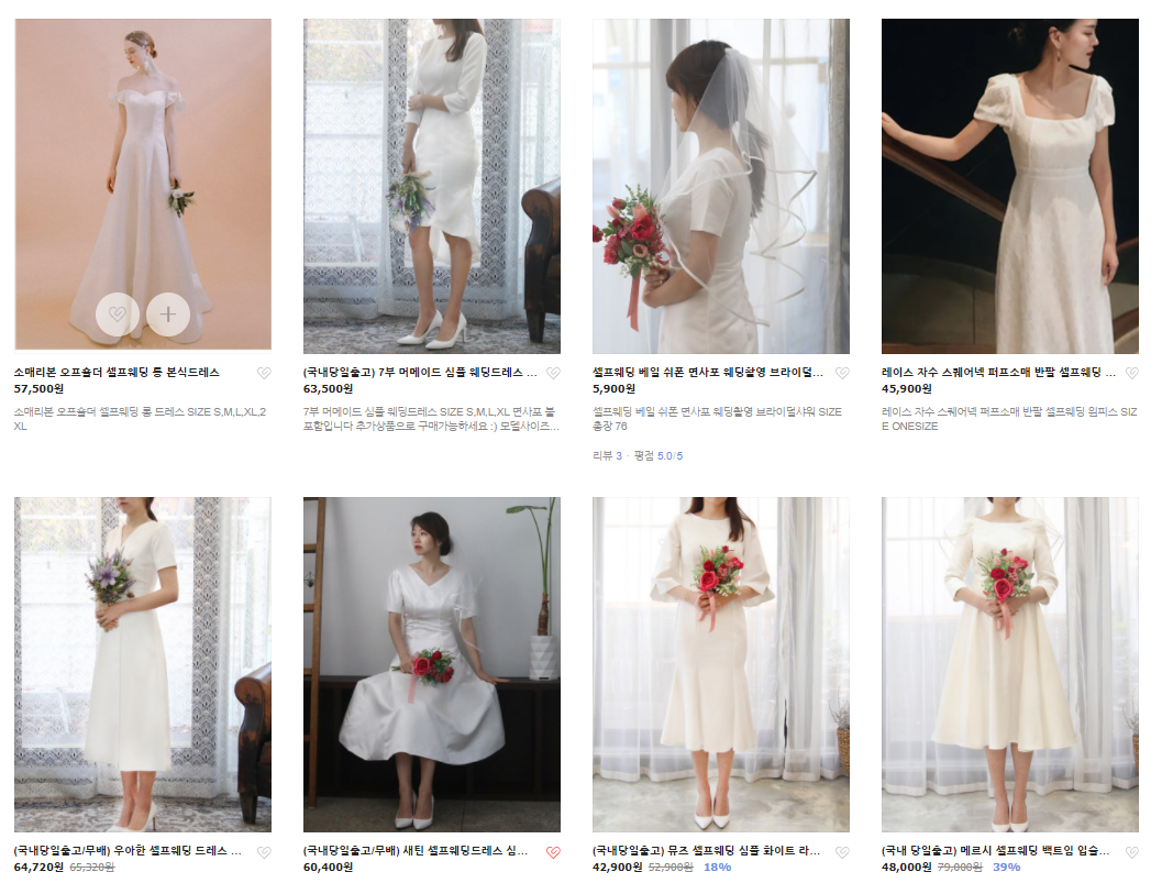 보통 쇼핑몰들은 셀프웨딩드레스나 스몰웨딩원피스 사이즈가