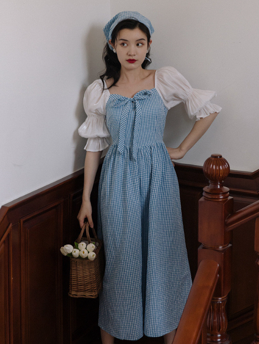 체크무늬 알프스 스위스 유럽 복고풍 원피스 무대의상 공연 두건 졸업사진촬영 컨셉 스냅 : 라라