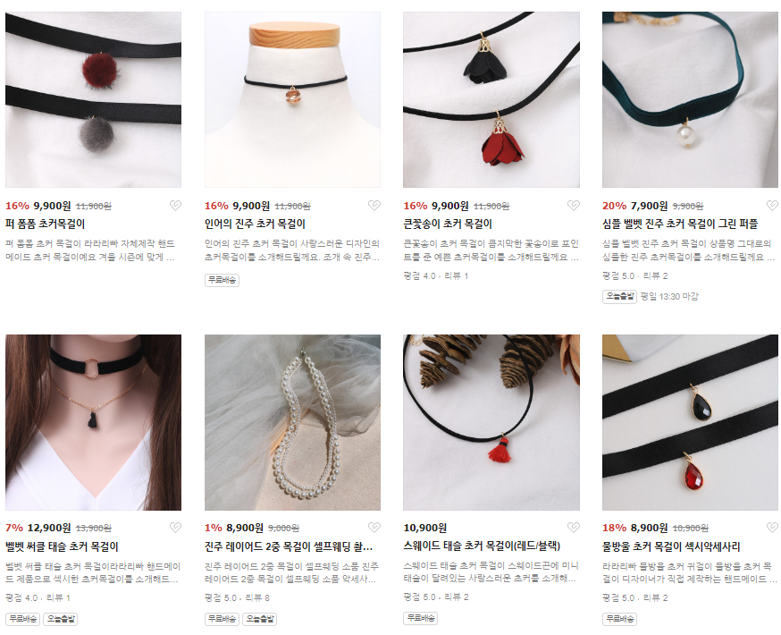 핸드메이드 초커목걸이 많은